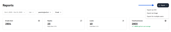Click on the Export button on the right side of the page to export your results as CSV, image, or for multiple users (if applicable).