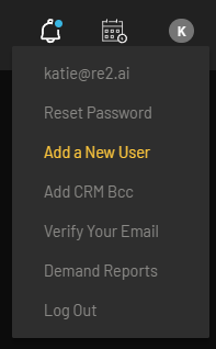 To request to add a new user, hover over your profile on the top right corner of the screen, causing the drop-down to appear. Click the “Add a New User” option and a popup will appear.