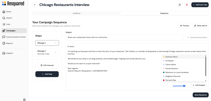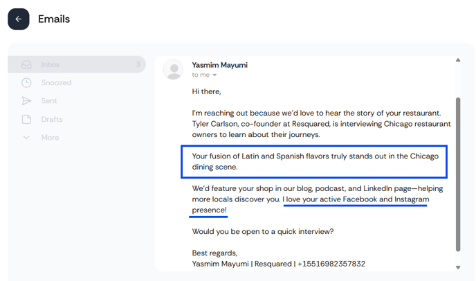 But the Snippets should be used in the way that works for your campaign. Your personal touch, your business's unique value proposition, is what is going to make the lead reply. So don't overload your email with too much Snippets.