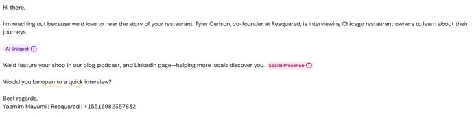 - AI Snippet: add a tailored paragraph based on the business information avaiable